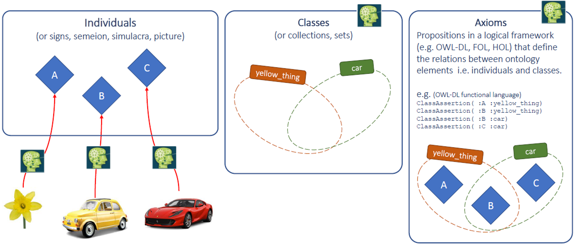 See the section about Description logic for more information about these language constructs. Axioms are also used to define relations between relations. These are further detailed in the chapter on Relations.